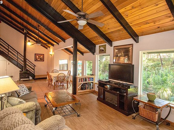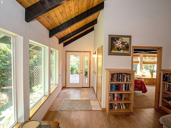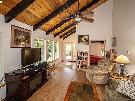 Set back for privacy on .65 acres. Gardeners Paradise w/2 greenhouses, shed & workshop. Handicap accessible to master bedroom w/roll-in open shower plus jetted tub. Main level open living/dining & kitchen w/custom pull-out drawers & Hickory cabinets. Upper level office, sewing/hobby room plus guest bed with full bath. Custom built-ins throughout. The woodstove has been removed.