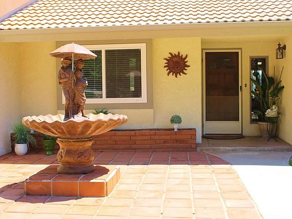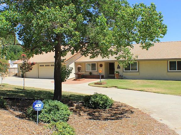 Gorgeous View Home Nestled In The Foothills! Circular Driveway greets you as you approach. This Lovely 2,454 Sq. Ft. 4 bedroom, 2 & 1/2 bath Ranch Style home is on over half an acre overlooking the canyon...no neighbors on one side or behind you! Elegant Country Charm when you step in the door. A sunken living room with a grand stone fireplace. & an Extra Large Family Room with a Wood Burning Fireplace. Breakfast Bar, Kitchen Nook and Formal Dining! New Windows Thru Out, Stuccoed Eaves, Central Heat & Air, & Ceiling Fans make this home comfy and cool in the summer and warm in the winter. Laminate Wood Floors and Tile Floors. Indoor Laundry, Butler's Pantry, LOTS of closets & storage! Large 3 1/2 car garage is ideal for your motorcycles, quads or other family toys plus 3 cars! Large Lot w Gated RV Parking for your boat and RV. A separate storage shed is big enough to handle all your gardening equipment. Relax in your Fully Landscaped Backyard with Covered Patio. Enjoy the serene, beautiful view of the mountains while you look for deer and other wildlife roaming the canyon behind your property. Just minutes away from Oak Glen, the views of the Canyon and Mountains are Absolutely Stunning.