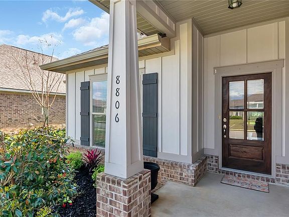 Fabulous Daphne location in highly sought after French Settlement! Just minutes from schools. The subdivision is a family friendly community with sidewalks throughout, beautiful landscaping, and a wonderful community pool. This home has been meticulously cared for, and is immaculate and move-in ready. The open concept floor plan is very spacious and has a great flow. From the inviting entry way you enter a beautiful living room featuring designer hardwood flooring, crown molding, and double openings to the kitchen and dining area. The extra wide kitchen features custom cabinetry, tile flooring, granite counters, stainless appliances, gas stove, walk-in pantry, and a lovely light filled dining area with a French door to the covered patio. The master suite offers a lovely bedroom with tray ceiling and lots of pretty trim, and a beautiful bathroom with double sinks, garden tub, separate shower, granite counters and tile flooring. Other special features of the home include a nice size laundry room, mud room, attached 2 car garage, large fenced yard, covered patio, blinds and shades on windows, ceiling fans, energy efficient windows and more. Call now for complete details and to schedule a showing appointment.