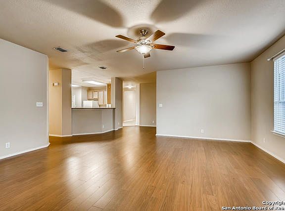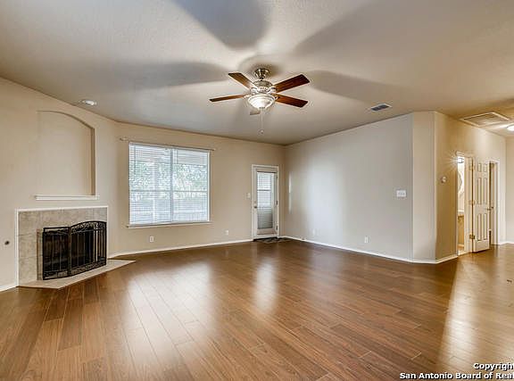 You'll love the new wood laminate flooring in this beautiful one story featuring an open and inviting family room with corner fireplace and art niche. Island kitchen with breakfast bar, gas cooking, and refrigerator. Master suite with dual vanity, separate tub and shower, and space for a sitting room. Fourth bedroom could be a study/office. Washer and dryer included! Water softener. Screened in back porch with ceiling fan.
