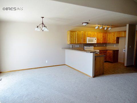 Attractively priced ranch offers great room w/vaulted ceiling, gas fireplace, dining area & kitchen w/ample counter space, cabinetry & pantry! Newer carpet, newly refreshed paint, mud room/laundry leads to large 3 car garage w/shop area. Lower level unfinished w/rough-in bath. Backyard is fully fenced w/an inviting flagstone patio & automatic lawn sprinkler system w/non-potable water provided w/HOA. Close to schools, shopping & new Buffalo Creek Park. Cute, basic & ready to go!