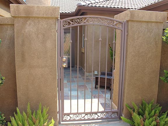 Northwest Gated Community Beauty. This lovely home has 2 bedrooms, 2.5 baths and a 2 car garage. This property features an office that is used as a reading area, a great room with a fireplace and an indoor laundry room. This upgraded kitchen offers quartz countertops, an island, a pantry, stainless steel appliances, recessed lighting, and a kitchen nook. There are plantation shutters, luxury vinyl flooring and surround sound in the kitchen, great room and garage. The master bedroom offers access to a private patio, a bath room with double sinks and a spacious shower. The backyard has mature landscaping. This gated community property has access to a community pool, perfect for those hot summer days.