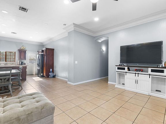 Located in the Heart of Southwest Bakersfield, this perfect starter home features an open-concept living with high vaulted ceilings, crown molding, and recessed lighting throughout. The upgraded kitchen features granite countertops, stainless steel appliances, upgraded cabinetry, and generous prep and storage, opening to the great room for easy entertaining. Tile flooring throughout the home. A spacious primary suite pairs with three additional large bedrooms for flexible use as guest room, office, or gym. Paid-off solar helps lower monthly costs. Convenient location near shopping, dining, parks, and much more.