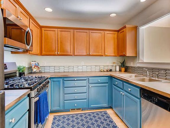 Kitchen w/stainless; new microwave & gas stove, fresh paint. Wood floors downstairs, new carpet upstairs. Master has walk-in closet and attached bath. Good light /Milgard windows. Washer/Dryer included. Xtra storage under stairs. Raised garden beds in fenced backyard. Convenient location, easy access to I-205 or Powell. Just blocks to the bus stop & Maxline, near Kelly Butte Nature Area. No HOA's. Energy Score 8. See actual video tour. [Home Energy Score = 8. HES Report at https://rpt.greenbuildingregistry.com/hes/OR10119712-20181010]