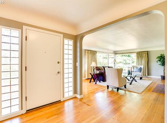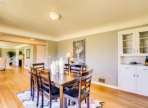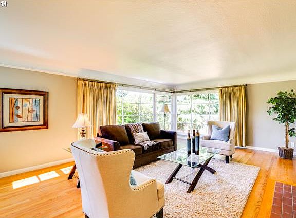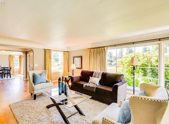 Wonderfully updated Mid-Century Modern ranch on a HUGE LOT maintains the beauty of its 1949 construction. The backyard is excellent for entertaining with a covered patio, and a built-in outdoor barbecue pit. Inside, gorgeous hardwood floors are lit by huge floor-to-ceiling windows. Wood-burning fireplace, coved ceilings, elegant arched doorways, classic trim, and molding add fantastic detail. Springwater bike path around the corner!