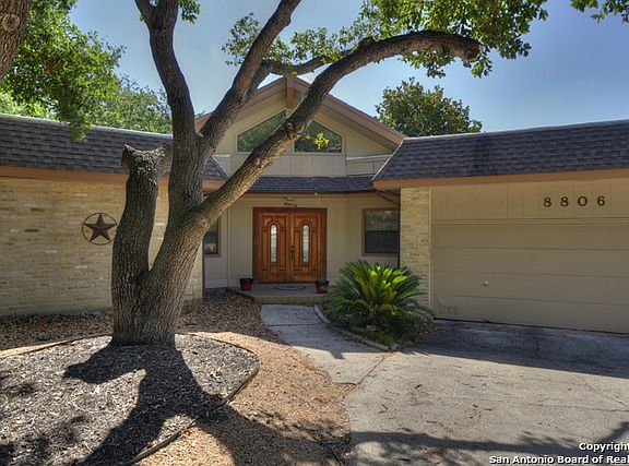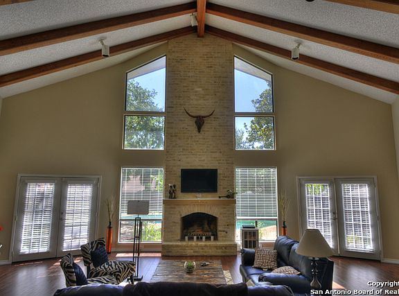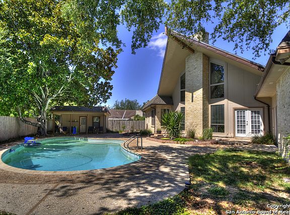 Older home in Windcrest has so much charm! Located in a treed cul-de-sac with pool and man cave/pool house. Unique open floor plan has sunken living area with tall ceilings, fireplace, wet bar and a wine storage room. Updated flooring, paint, window treatments and other nice touches have been added throughout. Master bedroom has access to backyard. Landscaping has been improved on this .25 acre lot. You will even find a green house and a storage building. Easy access to bases, schools and shopping. Add your special touch and make this home yours today!
