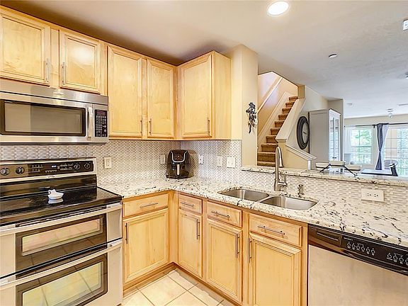 Nice updated gated community. 3 porches allow for views of the lake view. The kitchen features granite counters and custom glass back splash. Ceramic floors through out the main living areas and new flooring on the second floor. Master suite has a porch over looking the lake and has a private full bath with combo shower/tub. Other features include second floor laundry room, Newer AC unit, Hurricane rated windows and doors, and a 2 car garage with opener. Nice patio areas over looking the lake view. Freshly painted inside makes this a move in ready unit. Community is gated with a community pool and lots of sidewalks and green space to go for long walks. This great community is Located in the heart of of it all- close to Restaurants, shops, coffee houses, Stores, gyms and and other attractions -All with in about one mile away. $375.00 monthly condo fee covers : water, trash, sewer, cable, internet, Exterior maintained, exterior insurance, and well cared grounds along with community pool.