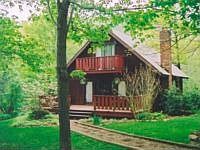 A-Frame home adjacent to National Forest and next to a beautiful creek. Living room has nice hearth with wood insert. Deck off master bedroom. Replacement windows, culligan water system (2003).