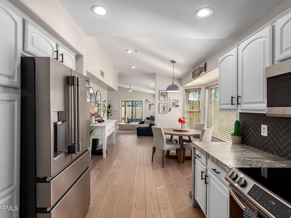 Beautifully remodeled 4-bedroom, 2-bathroom two-story gem, perfectly nestled in a peaceful cul-de-sac with close proximity to the freeway to enjoy all that Scottsdale has to offer. This property offers modern upgrades, stylish finishes, and a layout designed for both comfort and functionality. Enjoy the elegance of engineered hardwood floors throughout, adding warmth and sophistication. Kitchen is equipped with sleek stainless steel appliances, waterfall granite countertops, and a stunning backsplash that ties it all together. Stay worry-free with a recently replaced AC uniit and Newer roof. Enjoy Summers in your own pool and spa. Great Airb&B opportunity
