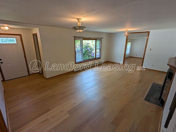 Enjoy the peace and charm of this beautifully updated ranch-style duplex. Set in a scenic location, this home features brand-new engineered hardwood floors and natural wood trim throughout. The spacious living room welcomes you with a picture window and cozy fireplace. The eat-in kitchen offers plenty of room for a full dining setup, and the flexible bonus room can serve as a home office, family room, or potential third bedroom. There are two nicely sized bedrooms, each with closet spaceone includes a ceiling fan for added comfort. The bathroom includes laundry hook-ups for your convenience. An attached 2.5-car garage provides ample parking and storage, and the yard is perfect for enjoying the outdoors. Apply now or schedule your guided virtual tour on Landlord Leasing's website.