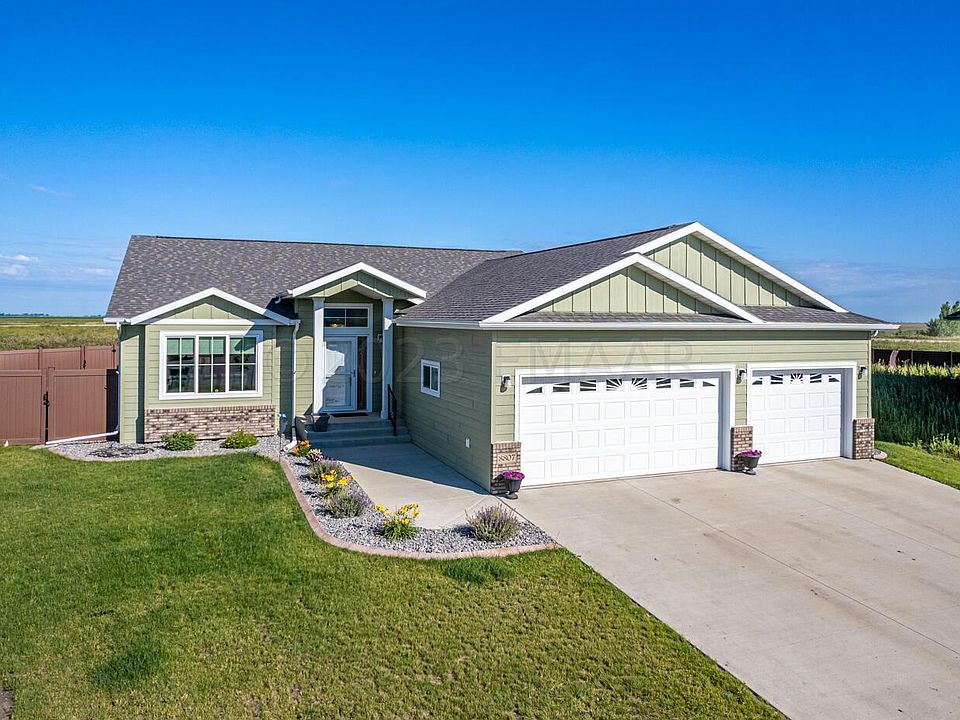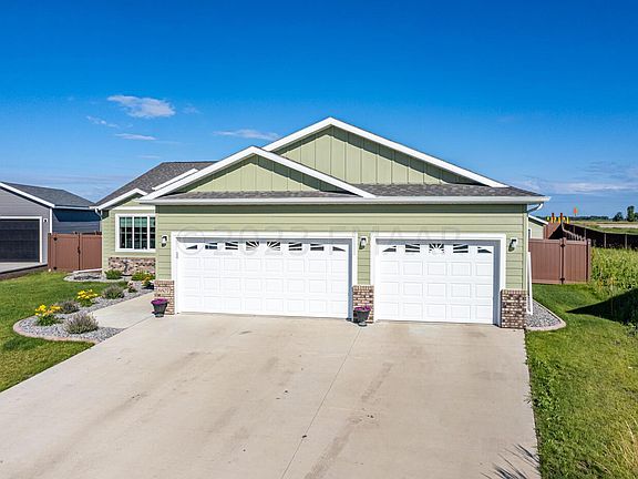Find attention to detail in this lovely 4 bed, 3 bath rambler. Vaulted ceiling, open wooden spindle railing, and fireplace with brick accent and wooden mantel. Primary suite includes walk-in tile shower with glass wall and door. Basement is finished with 2 bedrooms, a bathroom, a massive living space and finished storage area. Feel your investment is protected with 2 sump pumps, and hydro back-up. The garage is 28'x32' with 2x6' construction, finished, heated and has a utility sink with hot and cold water. Outside find the maintenance free covered deck, private fenced yard, landscaping, irrigation system, shed with overhead door and