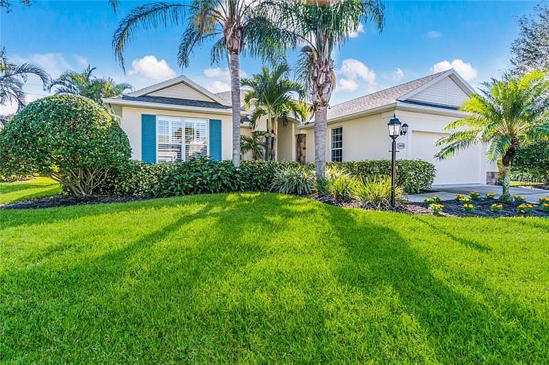 MODEL PERFECT HOME IN WISTERIA PARK! Take residence in one of the area???s most popular neighborhoods with this charming 3 bed plus a den,2 bath,2287 sq. foot home.Step inside & you will be greeted by the gorgeous great room with tray ceilings offering a beautiful built in with cabinetry and shelving for your favorite pieces of art or to display the best of your family photos. Oversized pocket sliding glass doors open to your private screened in lanai perfectly set amid attractive landscaping for outside dining or reading your favorite book.The large kitchen with center island & ample countertop space for cooking is accentuated by the cozy eat-in kitchen area.The lovely bay window allows the natural light to shine through while providing a view of palm trees and backyard.Beautifully tiled floors add just the right touch of elegance to this spacious & well-maintained home.The tranquil master bedroom features 4 modern transom windows & is adjoined by a large en-suite bathroom with his & her sinks as well as a corner tub.This home also features plantation shutters throughout,12 ft ceilings,separate laundry room with plenty of storage space & a two car garage with extra built in storage.Amenity rich Wisteria park offers a heated community pool & spa,playground & community gathering area with gazebo.Enjoy life at its best as you kayak,fish,bird watch & stroll through the beautiful nature trails that boast Florida???s wildlife & natural surroundings,all located at Desoto National Park & Robinson Preserve close by.