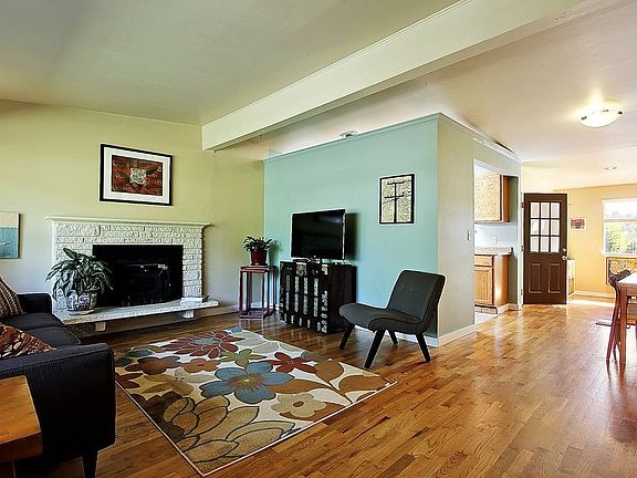 Move in ready, bright 4 bedrooms, 2 bath home on all one level. Hardwood floors, fireplace, open dining room leads to bonus area overlooking fenced backyard. Relax in the master bedroom with ensuite bath and french doors leading to backyard and deck. BBQ on the partially covered deck, with large yard, garden and play space. Quiet street with amenities close by. Stroll for dinner, coffee and convenient shopping. Easy commute to downtown Seattle. Walk Score 86/100.