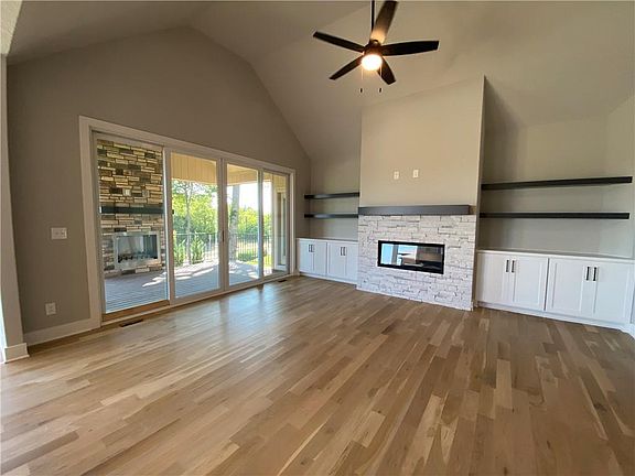 Welcome to this stunning Rev 1.5-story residence, perfectly positioned across from the picturesque Lake Lenexa. Boasting a timeless design, this home offers a unique blend of comfort and elegance. The inviting great room is adorned with a classic fireplace, creating a warm and cozy atmosphere for gatherings and relaxation. Enjoy the beauty of the outdoors from the covered deck, where another fireplace awaits, providing an ideal setting for alfresco entertaining or simply unwinding with the tranquil backdrop of treed views. This home harmoniously combines indoor and outdoor living, allowing residents to savor the serenity of nature in every season. The main level is thoughtfully designed, featuring a well-appointed kitchen, spacious living areas, and a master suite that exudes luxury. Descend the stairs to discover additional bedrooms and versatile spaces that cater to various needs. The finished walkout lower level is a haven for entertainment and relaxation, complete with two bedrooms, a recreational room, and a convenient bathroom. Immerse yourself in the beauty of this residence, where the architecture seamlessly integrates with the surrounding landscape, creating a haven that invites both comfort and style. With its prime location across from Lake Lenexa, this home offers a unique opportunity to experience the beauty of lakeside living while enjoying the convenience of a thoughtfully designed and well-appointed interior.