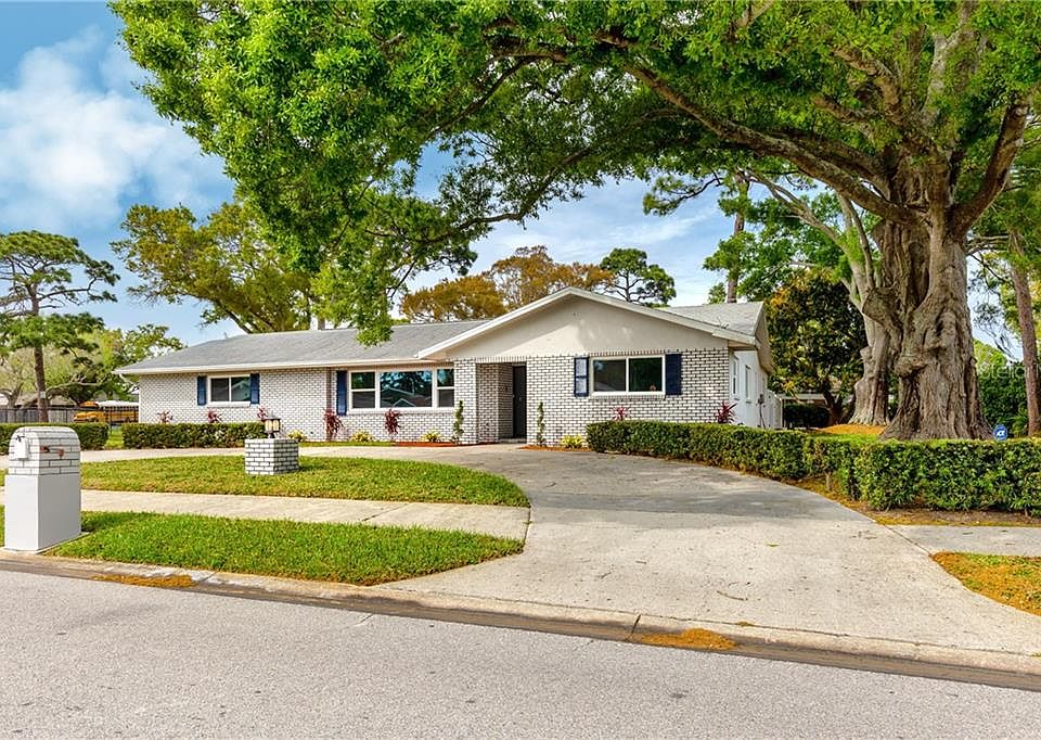 Imagine yourself living here as you walk into this meticulously renovated, gorgeous home in the heart of Bardmoor. This four-bedroom, three bath, two car garage on a third of an acre lot with the Bayou Club in your backyard. As you enter the home notice the attention to detail with tile floors throughout the main living areas. Custom cabinetry in this large kitchen with the finest diamond quartz and brand-new appliances. Enjoy the back patio with pocket doors that open all the way or stay warm during the winter with the wood-burning fireplace in the family room. This home features indoor laundry with plenty of storage. A spacious master bedroom with TWO closets (walk in), double vanity, and walk-in shower. This split floorplan home features the three separate bedrooms and two baths on the other side of the house. Easily entertain your guests in the huge paved screened in lanai with still plenty of yard for your dog or fun activities. Extra features of this home include new hurricane impact PGT windows, AC replaced in 2018, roof in 2014, Rain Bird sprinkler system with well, and gutters. Minutes from the bayou and Bardmoor golf course. Conveniently located near shopping and entertainment and a short 15-minute drive to the beach. Come see this gem before it's gone!