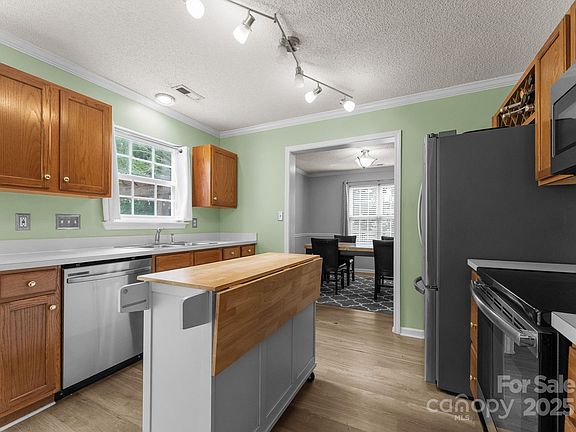 Welcome to 8808 Palmutum Place! This beautifully maintained home is nestled on a spacious .34-acre lot in a quiet cul-de-sac. Enjoy Southern living at its finest with a rocking chair front porch, perfect for morning coffee or evening relaxation. Inside, the home offers a classic, functional layout with 3 generously sized bedrooms and 2.5 bathrooms, ideal for both everyday living and entertaining. The bright and inviting kitchen features stainless steel appliances, offering both style and practicality. The primary suite is a true retreat, showcasing vaulted ceilings, a luxurious garden tub, and a skylight that fills the space with natural light. Step outside to your fully fenced backyard, a true haven with ample space for play, pets, or a garden oasis. The 2-car garage adds extra storage and convenience, rounding out the many features of this move-in ready home. Don’t miss your chance to own a home that blends timeless charm with modern comfort in a prime Charlotte location!