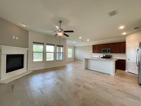 Beautiful one story house with 4 bedrooms, 2 full bath, 2 car garage located in Copper Creek, a highly sought after community in Fort Worth. You don't want to miss out! Professional landscaping brings a warm welcome! Boasting an open flowing floor plan, light wood looking tile through out the hallway, bathrooms, living room and kitchen area. The 1st and 2nd bedrooms share one full bathroom, the 3rd bedroom has a big closet. Large living area with a fireplace and three big windows. Gourmet kitchen features a giant island, stainless steel appliances, a gas stove & opens to the breakfast nook looking out to the huge backyard. Peaceful master suite features an ensuite bath with dual sinks, spacious walk-in shower & closet. Enjoy relaxing under the extended patio, playing in the grassed yard, or enjoy all that this wonderful community offers, from the swimming pool, playgrounds, and brand new elementary school in the subdivision also. Minutes away from fine dining & shopping, including Costco. Tenant shall purchase renter insurance, pay all utilities including electricity, water, sewer, gas, and wifi