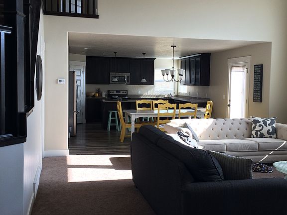 under contract!! Beautiful, bright , open floor plan. Built by Edge. Eye Catching Stairway that is the focal point of the home. Large open kitchen with plenty of cupboard storage, quarts counter tops, stainless steel appliances, corner pantry, windows above kitchen sink. Large master bedroom with amazing master bathroom. standing shower, perfect size tub, not too big, bot too small, separate toilet room, walk in closet, and lots of natural light from 2 windows. Open naturally lit Family room with fireplace, large windows open to an incredible view of the hills, Winters will never be the same. Watch the snow fall while drinking hot cocoa by the fireplace with your Christmas tree for mood lighting ;) Large room off entry for office or formal living room. Laundry room behind kitchen with nice cupboard space. Half bath off kitchen. 3 bedrooms tucked away on the second level. Large rooms with walk in closets and great views and natural light. Loft on second level has plenty of space for sectional and large TV, great for the kiddos to play games and watch movies. Bathroom on second floor has large counter space and cupboard storage with separate shower and toilet room. Basement with future kitchen, dining room, family room, 2 bedrooms, one full bathroom, 2 storage rooms, under stair storage, Large cold storage space, DAYLIGHT BASEMENT:) Fully landscaped front yard, unfinished back, LOTS of potential, trampoline pit done :) We have a Tennis court/basket ball court 4 houses up from us, and a pool just for northmoor/ southmoor neighborhood....its like being on vacation every Summer:) Walking/running trails, and an atv trail not too far off. Neighbors with hearts of Gold! You will never want to leave. Text or call for a walk through any day. 801 935 7727 serious inquiries only