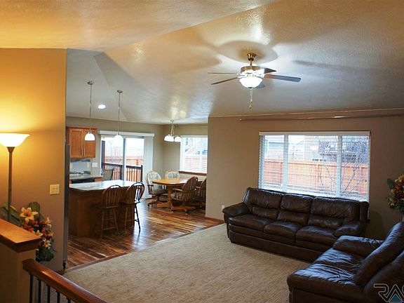 Better than new ranch style home in fantastic west Sioux Falls location. Gorgeous and functional floor plan with open living, dining, and kitchen area. The main floor living area features vaulted ceilings and Acacia wood floors. Gourmet kitchen offers plenty of cabinetry & counter space, a pantry cabinet, and stainless steel appliances. The master retreat features a private bath with double sinks, a tiled step-in shower, and a generous walk-in closet. Main floor laundry/drop zone with built in seat & coat hangers. The basement is bright and inviting. Huge family room with plenty of space for movies and games. Tons of space in the oversized garage with extra deep 3rd stall, perfect for motorcycles, toys and projects. Enjoy the shade or grill in the rain on the covered deck. Custom landscaping and sprinkler system with drip irrigation. Too many upgrades and improvements to list in this better than new home!
