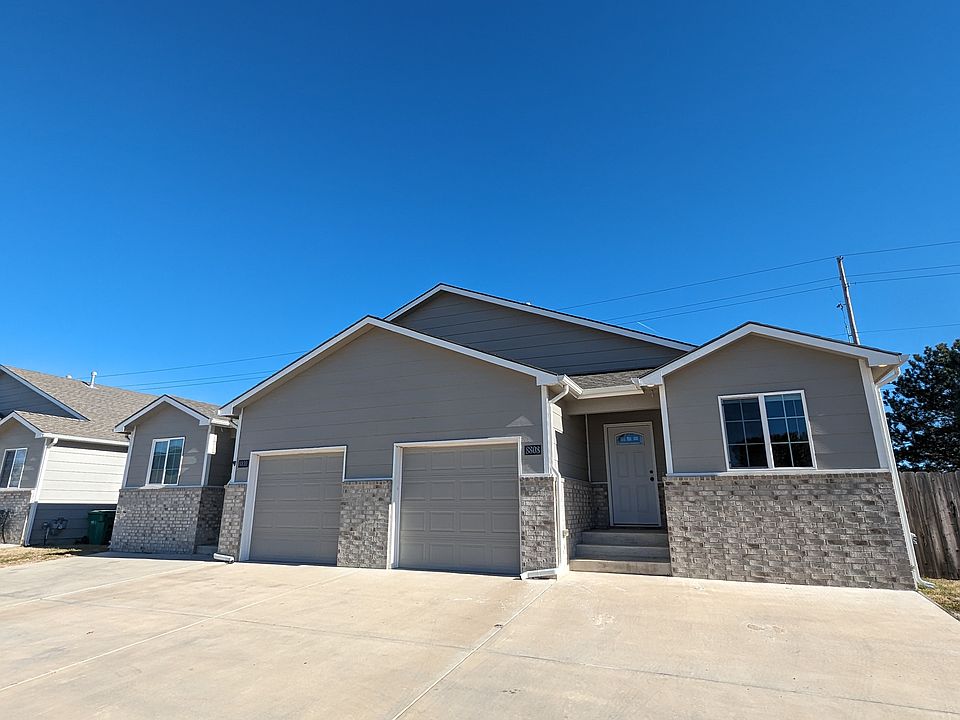 Awesome location at 29th and Tyler, Maize schools. This two year 5 bedroom, 3 bath duplex features custom kitchen cabinets from The Cabinet Find, granite countertops, VLP through the main floor, carpet in all bedrooms, lots of storage, huge family room in basement, fenced in yard with sprinklers and lawn care is paid for. Ready to move into now. The owner pays for lawn care.