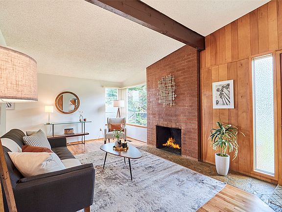 Life is good in this stylish mid-century home ready for your finishing touches! Enter to a circular floor plan with refinished hardwoods, vaulted ceilings, oversized picture windows & brick FP. The spacious kitchen opens to the adjoining dining room & a west facing deck overlooking the back yard & territorial views. 3 BR’s on the main level all with generous closets & gleaming hardwoods, including the primary BR with ¾ bath. The main floor also offers an entry closet & a full hall bath. The lower level boasts a huge retro rec room with wood burning FP, 4th BR, ¾ bath & walk out access to the lovely, private back yard. This well maintained & freshly painted classic offers a fantastic opportunity for savvy buyers to finish to their taste!