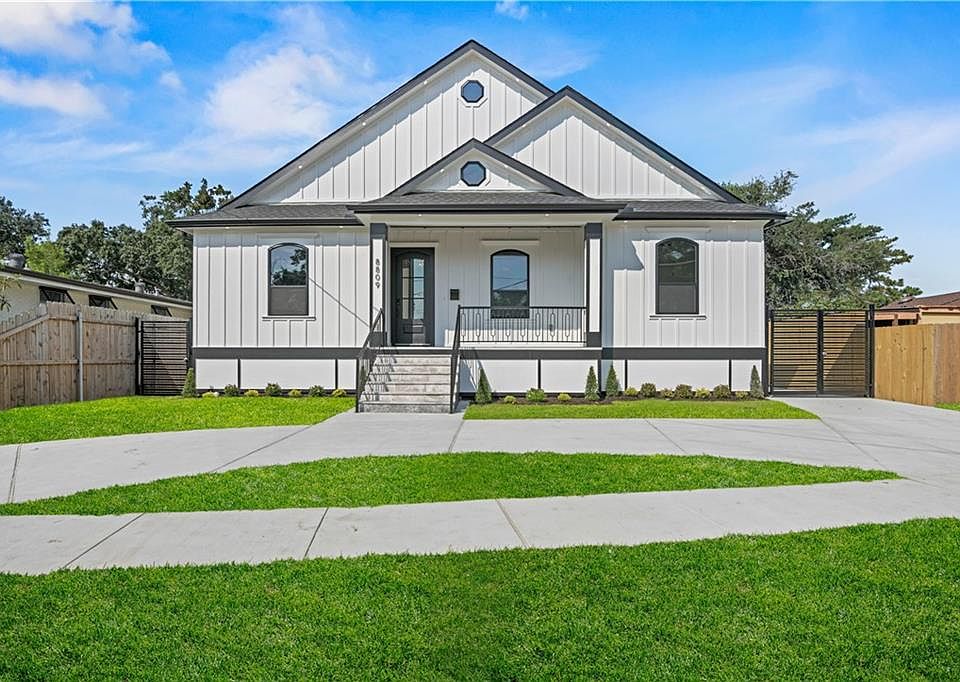 Experience modern living in this brand-new 4-bedroom, 3-bath home in the heart of Metairie! Enjoy cathedral ceilings, an open floor plan, and waterproof vinyl flooring throughout. The gourmet kitchen features abundant cabinetry, an oversized quartz island, and a spacious butler’s pantry with sink and storage. The primary suite offers a spa-like retreat with dual vanities, soaking tub, oversized shower, and a dream walk-in closet. Additional highlights include custom millwork, a TV feature wall, covered patio with outdoor kitchen, large backyard, rear yard access, and parking for 4+ vehicles. Conveniently located near the interstate, Veterans, shopping, and dining, this home perfectly blends comfort, quality, and style. Come make this your new home.