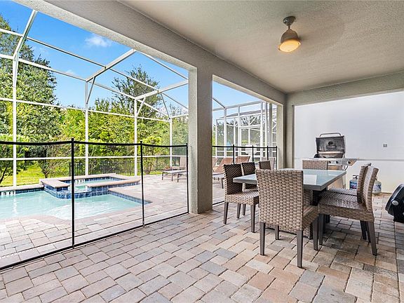 Screened-in pool and spaResort-style poolWater slidesCovered lanaiPrivate oasisBreakfast barWell-appointed bedrooms