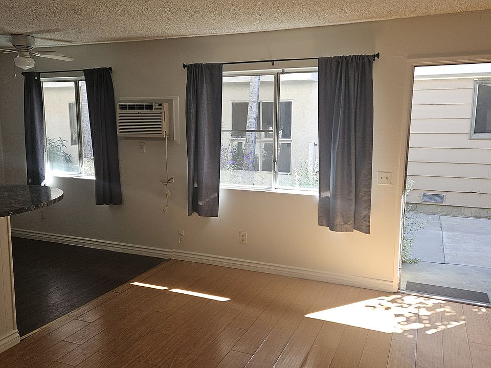 Gated, well maintained property, offering a ground floor, well-lit 1 bedroom/1 bath very comfortable unit with heating and ac. The unit situated close to 1 reserved spot in off street gated parking in the rear. The property is located a walking distance of only 1.5 blocks from Cal State Northridge with many amenitites nearby. Shared laundry available close to the unit. Non-smoking property!