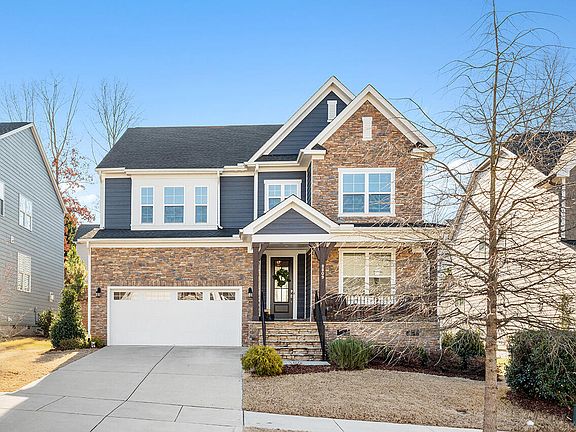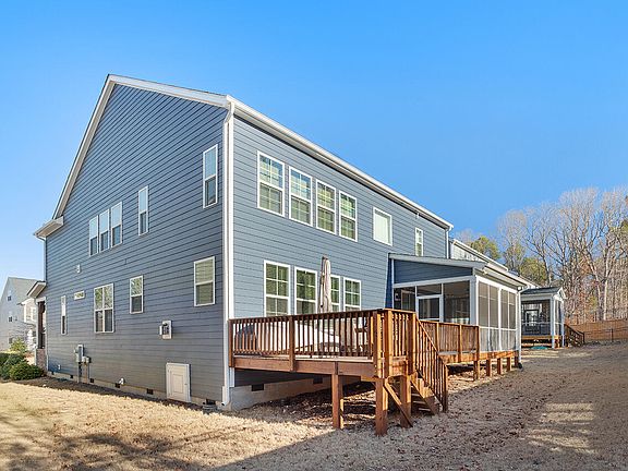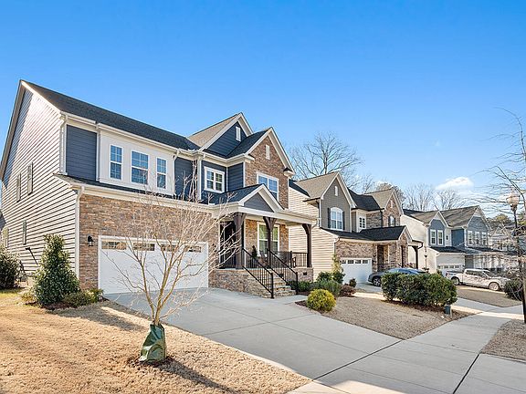 Like new home ready for move in. Minutes to RTP major employers, popular Leesville area schools. Open flowing floor plan fills with natural light. Gorgeous LVT hardwood style floors, extensive trim work / moulding. 1st floor guest suite with adjacent full bath also makes a great home office. Elegant formal dining room with tray ceiling. Kitchen area open to large family room with gas log fireplace. Gourmet chef's kitchen with quartz counter tops, tile backsplash, stainless appliances, gas cooktop and commercial style vent hood. Large breakfast room and center island counter seating. Huge walk-in pantry. Mudroom entry from garage with built in seating & cubbies. Flexible central 2nd floor loft. Large laundry room with mop sink. Owners suite has tray ceiling, beautiful private bath with shower and soaker tub. Large guest rooms - one with private bath. Breezy covered porch, large sun deck, and spacious 3 season screened porch.