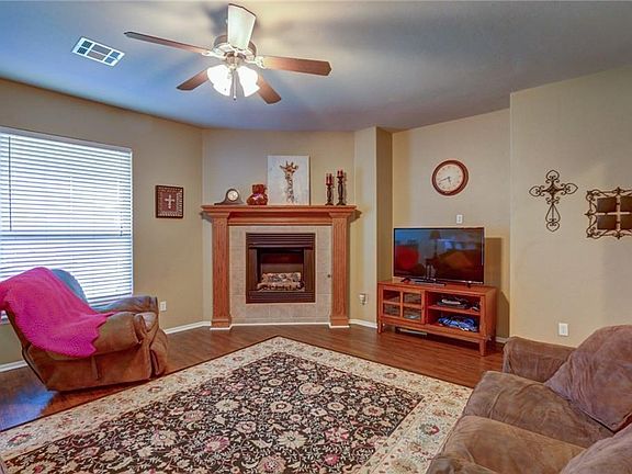 Great home with 3 bedrooms plus a study nook! Open kitchen/dining/living room design with breakfast bar, gas range, and pantry. Split bedroom plan offers private master suite with double vanities, garden tub, separate shower, walk-in closet, and access to covered patio. Gas log fireplace in living room. Other amenities include: wood floors, fresh interior paint, and flat backyard with privacy fence.