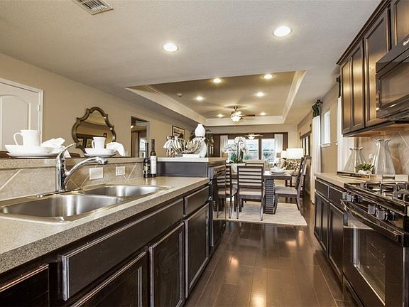 NEW CONSTRUCTION: Frisco Lakes by Del Webb. Senior Adult 55+ Living Community. Steel Creek plan with brick and stone exterior - Elevation B. 2BR, 2BA + Wood flooring + Smart Home - 1400 sq.ft. Available for November 2018 move-in. Gorgeous Kitchen with stainless steel appliances, 36 inch upper cabinetry, silestone countertops, pendant lighting, and tile backsplash. Tray ceilings in Gathering Room & Owner's Suite.