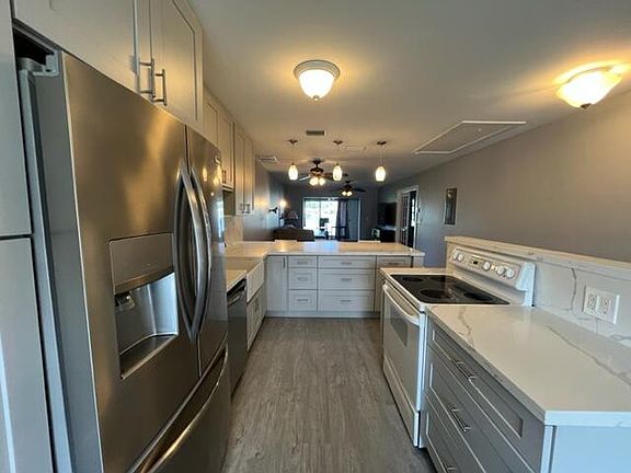 Excellent location close to shopping. 2 Bedroom, 2 Bath with interior lake-view corner unit all ADA Accessible. Renovated and redesigned. All new electrical throughout unit. Renovayed kitchen with wood cabinets and granite countertops. Bathrooms have been update. Master bedroom has french doors to enter, with vinyl flooring throughout unit. Full size washer and dryer inside unit. This property is walking distance to the pool, all new roofs and soffits owner will pay the assessment. Schedule today wont last long!!!