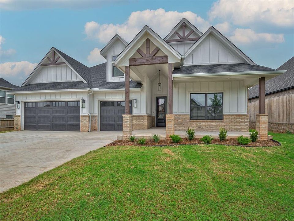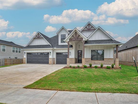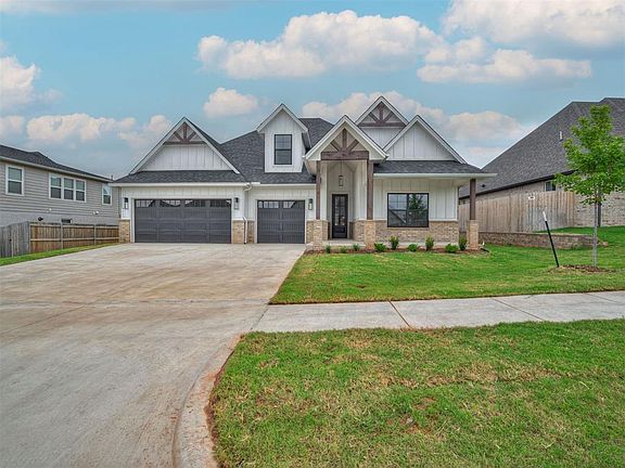Popular floor plan by Shawn Forth Homes, located in the sought-after Woodland Park community. With 2,668 square feet of well-appointed living space, this home offers 4 true bedrooms, 4 full bathrooms, an upstairs bonus room with private bath, and a spacious 3-car garage. From the moment you enter, you're greeted by clean lines, elevated design, and warm, natural materials. The open-concept living area features a vaulted ceiling with wood beam accents, a tile-to-ceiling gas fireplace with maple box mantle, and large windows that flood the space with natural light. The kitchen is equally impressive with Crystal cabinetry extending to the ceiling, lighted glass display uppers, quartz counters, a 5-burner gas cooktop, oversized island, and a hidden walk-in pantry. Whether hosting guests or enjoying a quiet evening in, the layout is perfect for modern living. The private primary suite includes a freestanding soaking tub, frameless shower, dual vanities, and a large walk-in closet with built-ins. Secondary bedrooms have direct bath access and generous closet space. Upstairs, the bonus room and full bath offer flexibility for media, play, guests, or a home office. Other features include a dedicated mudroom with built-in drop zone, walk-in laundry room, large covered back patio, and thoughtful lighting throughout. Located in Edmond schools and just steps from Redbud Elementary, residents enjoy top-tier community amenities including a clubhouse, two pools, fitness center, basketball court, and trails. Now available—schedule your private tour today. Inquire with listing agent/builder team directly to learn about other nearby homes available, lot opportunities to build on, new communities and "on your lot" builds.