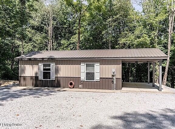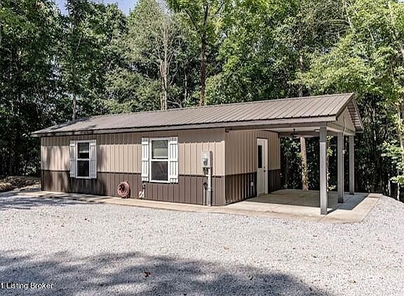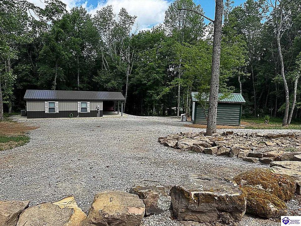 Welcome to your own little place in the woods. This little 1 bed 1 bath home has an open living room and kitchen with wood trim throughout. Plenty of storage space in the pantry with a washer/dryer hookup in the bath. Outside you'll enjoy the covered porch with concrete walkway around the home. You'll have room to roam as this house sits on approxiately 5 aces with your very own pond at the back of the property. The front features a large driveway lined with huge stones in the landscaping. Close to Leitchfield, Nolan lake, Rough River Lake. Book your Private showing today!