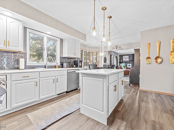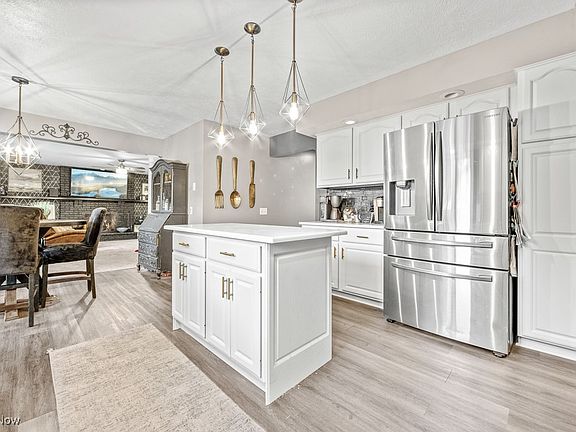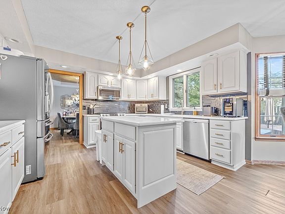 stainless steel appliances, and lighting. The family room is open to the kitchen and has recent