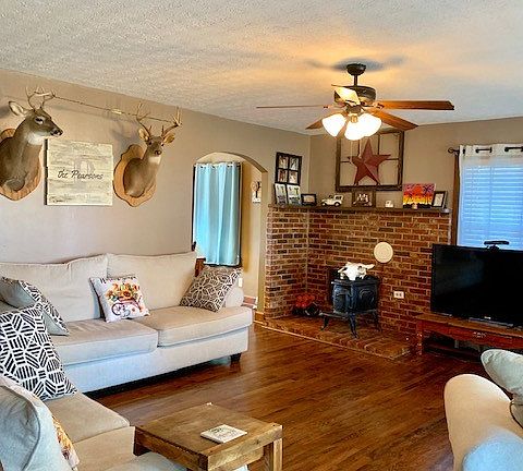 Darling home with absolutely beautiful original hardwood floors sitting on 1.2 acres in town and just minutes to the interstate. Large kitchen and dining area and HUGE laundry room!