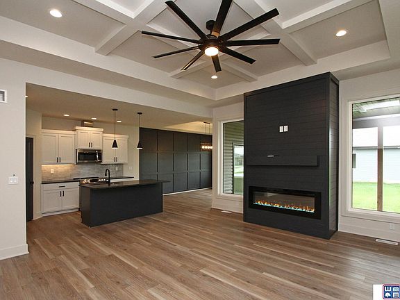 Newly designed ranch by JD Builders Inc. features more than 2,800 finished sq.ft. with 5 bedrooms, 3 bathrooms and 4 stall garage. Space on main level is efficiently maximized by open kitchen/living/dining concept and 10”coffered ceilings in great room. The kitchen boasts center island with breakfast bar, granite counter tops with tile backsplash, birch cabinets with crown molding, stainless steel appliances and pantry. Master suite features a bathroom with double sink vanity, walk in tile shower and walk-in closet. Mud room with lockers separate the house from the garage. Laundry room is conveniently located on the main level. Spacious finished basement has a rec room, two additional bedrooms, full bathroom and room for storage. Oversized 4-stall garage is great for workshop space and toys. Other features included huge 43 x 12 covered patio full Sod, UGS, sump pump and garage door opener.