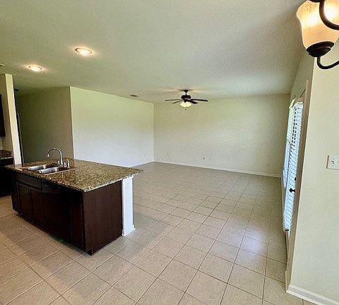 Double car garageOpen floor planCovered back patioTile flooring