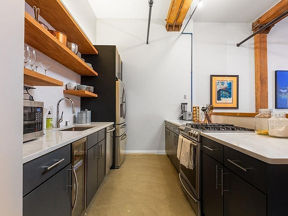 Discover 881 E 1st, Unit 103 a gem in South Boston's coveted City Point neighborhood! Renovated in 2018, this stunning 2 bed, 1 bath loft spans over 1700 sq ft and perfectly blends historic character with modern luxury. Step inside to be greeted by an expansive living area and soaring 13 ft ceilings. The inviting layout features an open-concept kitchen, large dining space and multiple seating areas. Updated kitchen is outfitted with stainless steel appliances, dishwasher and wine fridge included. Both bedrooms include a sizeable closet. The beautifully renovated bathroom has a waterfall shower and dual vanity. In-unit laundry and ONE PARKING SPACE included. This one-of-a-kind home is part of a professionally managed building with access to a common patio and yard. Easy access to all that Southie, the Seaport and Downtown have to offer. Less than half a mile to Castle Island and Thomas J. Butler Memorial Park outside your front door. FLEX MOVE IN OCT 1 - NOV 1. Pets negotiable. Renter pays gas, electric, cable/internet.