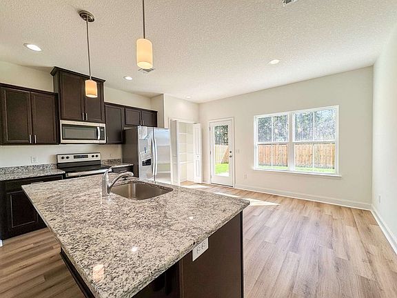 Whitaker 2 plan located in Griffin Park of Hinesville, just a quick hop & skip to multiple gates to Ft. Stewart! Step into the Whitaker 2 & take in the impressive two-story foyer & family room! The eat-in kitchen lies just beyond the family room with granite counters, stainless appliances & access out to the patio. You'll enjoy your time relaxing on the patio in your fenced, sodded & irrigated backyard! Also just off the kitchen area is the master suite. The master features a private bath with dual vanity (with granite counter!), soaking tub, separate shower & walk-in closet. Upstairs 3 nice-sized bedrooms & a hall bath with granite countertop can be found off a central flex space that overlooks the family room! Estimated completion December 2023. Seller offering $5000 in closing costs with Preferred Lender, exclusions apply.