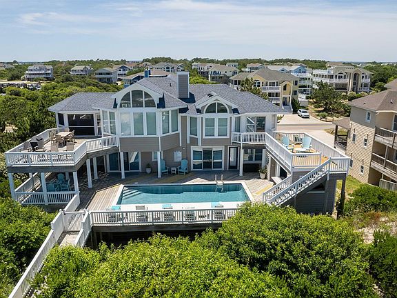 Absolutely stunning is the only way to describe this sophisticated, well maintained and upgraded home in sought after Whalehead. There has been so much care and attention to every detail in this stylish property that you won’t know where to look first. On the top floor, main living space you’ll find a spacious great room with comfortable seating and a gorgeous, tiled fireplace to relax around on cooler days. The kitchen is a chef’s dream, with recently installed granite, tile and upgraded appliances. There is ample seating around the kitchen bar area to chat with friends while enjoying the gourmet kitchen, and the adjacent dining area makes for an inviting conversation place during and after meals. The primary bedroom is also on this level, with beautiful furnishings and a chic custom bathroom. Head downstairs to the guest bedroom level and you'll find each bedroom and bath exceptional. Moving to the lower level, the spacious gameroom boasts tiled floors with a kitchenette to include a full-sized refrigerator, microwave and wet bar. And if that's not enough, wait till you step outside – WOW! You’ll love the recently resurfaced gunite pool, tiki bar, hot tub and plenty of lounging space whether you're looking for sun or shade. There is nothing not to love about this house – including all the upgrades the owners continually do to keep this a true gem. Please see associated docs for full list of recent upgrades. You won’t find many homes like this on the beach so bring your most discerning clients to see 881 Lighthouse Drive!