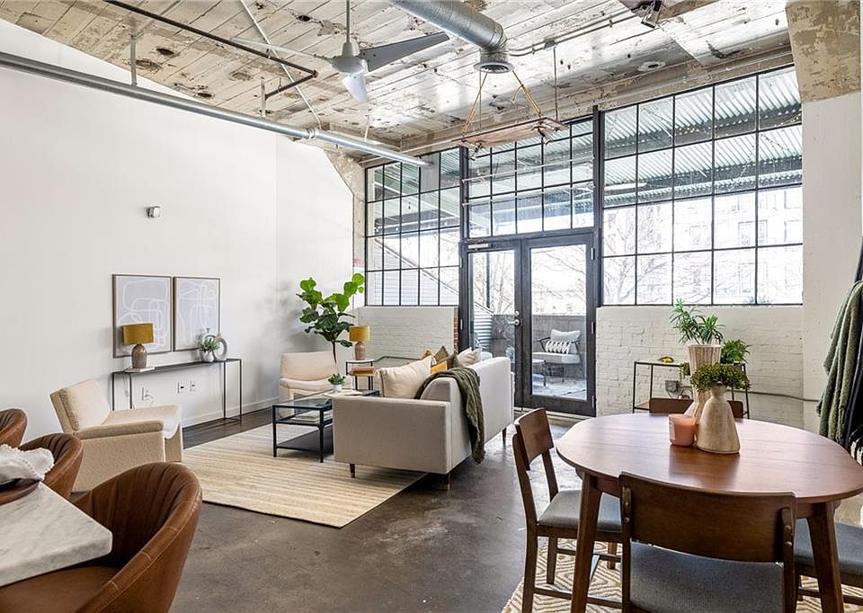 Beautifully renovated historic loft situated directly on the BeltLine in the vibrant Reynoldstown neighborhood. Bathed in natural light and spanning approximately 1,100 sq ft, this exceptional unit is one of just nine in the building to boast its own private patio, offering a personal outdoor oasis alongside immediate access to nearby restaurants, parks, and shops. Experience luxury from the moment you step inside, with numerous upgrades enhancing the space. Highlights include soaring 12-foot ceilings, fresh paint, and an impressive open-concept layout. The kitchen has been completely revamped with custom cabinets, marble countertops, elegant lighting fixtures, and a suite of stainless steel appliances. Ascend a few steps to the custom primary bedroom featuring hardwood floors, lofted industrial-style closets, and abundant storage options beneath the raised floor and above the bathroom. Step out onto the expansive 250 square foot covered patio, ideal for alfresco dining or pre-dinner cocktails amidst the lively neighborhood ambiance. Recent upgrades such as the brand new HVAC and water heater further elevate the convenience of this meticulously maintained unit. The building offers an array of amenities, including a newly completed rooftop observation deck boasting panoramic views of downtown Atlanta, complete with grilling stations and covered seating areas. Additional amenities encompass a community room with cable TV, billiards, ping pong, a business center, wifi access, a fenced dog park, and a fitness facility. Notably, A&P Lofts is listed on the Georgia Register of Historic Places and qualifies for the Landmark Historic Tax Abatement program, ensuring a stable annual property tax rate for eligible owners. This residence also includes one dedicated gated parking space.