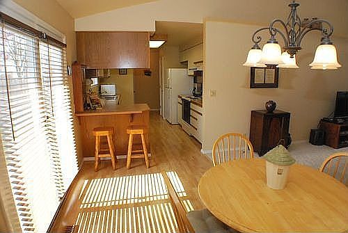 Fantastic two Bedroom two Bath Townhouse on a private lane in a great part of NW Boise. The vaulted ceilings in the living room give the home a wonderful open feel. Engineered hardwood floors at the entry and throughout the kitchen and dining area are as durable as they are attractive. Both bedrooms boast double closets. Three skylights add great passive lighting. 30 year roof and new furnace installed 2014, and new H2O heater in 2013. The only common wall is in the two car garage.