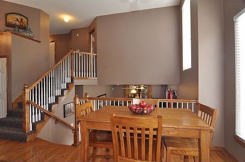 Charming & unique! Main level formal room w/vaulted ceilings & hardwood floors, great for entertaining guests. Large kitchen/dining combo w/hardwood floors & tons of cabinet space over-looking great room in LL. Large master bedroom upstairs w/coffered ceiling, & private bath includes dbl vanity, walk-in closet, jet tub, & shower. 2nd & 3rd bedrooms, 2nd full bath, & laundry room are also on the 2nd level. Walkout LL great room w/gas fireplace, 1/2 bath. Patio & fenced-in-yard. Sub-basement w/tons of storage room.