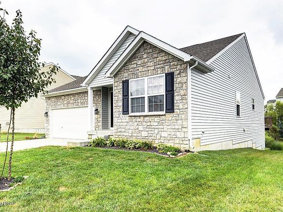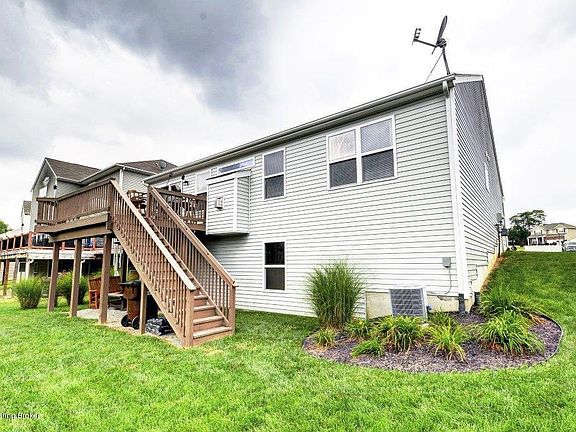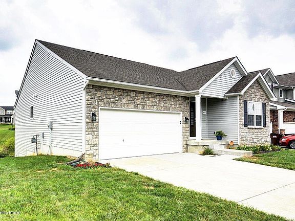As soon as you pull up, you'll notice the charming curb appeal with the gorgeous craftsman style front door and stone detail. The open floor plan makes this home feel large. The eat-in kitchen meets the family room, a great feature for entertaining. The family room is a warm and cozy place to relax with the fireplace as the focal point. All bedrooms are a generous size, giving every member of the family the space they need. The master bath is complete with a double vanity, shower and soaking tub. This newer home is move-in ready with neutral paint and wood-like floors. The unfinished walkout basement is expansive, and has great potential for an additional 1,500sqft. Walk outside to find the deck and fire pit area, two great spaces to relax. This home is conveniently located near I-265,