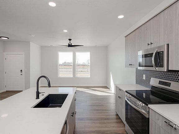 This brand new home located in beautiful Boise, Idaho welcomes you with open arms. Pop into the Boise 1460 and be amazed. Modern, open layout gives you a grand feeling without all the extra square footage. Extend your home to the outdoors patio while you entertain from the kitchen island. Your beautiful kitchen includes solid surface counter tops, NEW Greyloch soft close cabinets, stainless steel appliances, and soft close white cabinets. Sneak away to the tech space to find your own privacy or hide-a-way on the second level in the generous primary suite complete with a walk-in closet and en suite bathroom. Keep cozy and save time for life's other joys. Photos are of actual home!