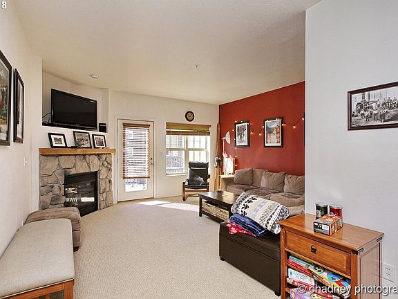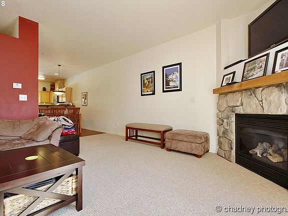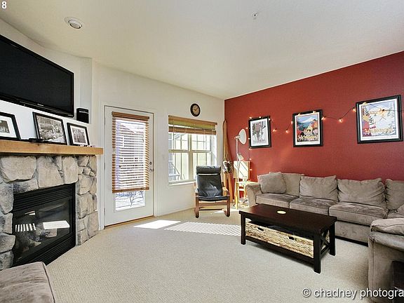 One owner Condo featuring gourmet gas kitchen w/SS appliances, under cabinet lighting & pantry w/laminate floors & eating bar. Dining w/high ceilings & updated lighting. Great room plan with rock fireplace w/blower, carpet & balcony access w/high ceilings. Powder rm. Upstairs w/master suite, 2nd bedroom w/MT. HOOD VIEW & bunk room (no closet). Hall bath w/shower. Keyless entry in Garage. Sold Turn Key w/Minor Exclusions.