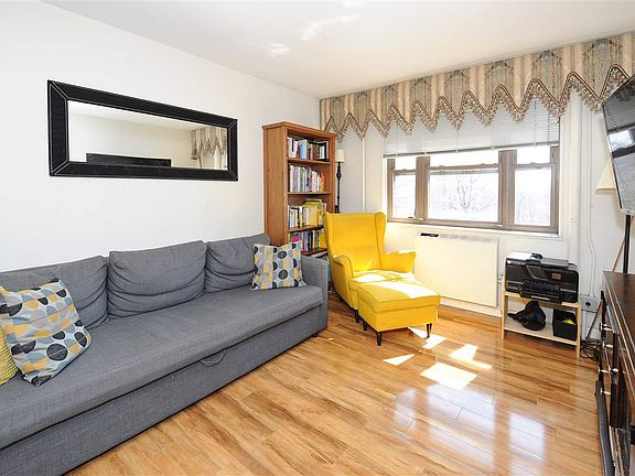 Remarkable opportunity to live across the street from the 167 acre James Braddock Park at an affordable price! 4th floor 2 bedroom co-op in well maintained building. Bright corner unit, every room with a window facing east and overlooking the park! Over 700 sq ft, features great layout with living room, dining area, and bright galley kitchen. 2 good sized bedrooms and 1 full bath. building offers laundry room on site, and parking at a low monthly fee if needed, but plenty of street parking at all times of day. low maintenance fee includes taxes, heat, and hot water!will not last, act fast!