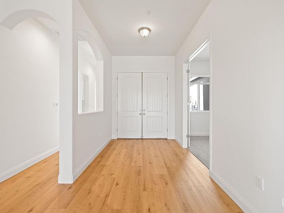 Lovely Snow Creek New Construction Home with RV Parking and Courtyard Entry! This spectacular split-wing floor plan home features owned Solar, double door entry, great room, raised hearth fireplace, quartz countertops, kitchen island, stainless steel appliances, double ovens, huge master suite with separate tub and shower, tankless hot water heater, and an oversized covered patio. approx. 2709 sq. ft., 4 bedrooms, 2.75 bathrooms, 3rd car garage with pass through, exterior stone, block wall fencing. Interior photos are not of subject property.