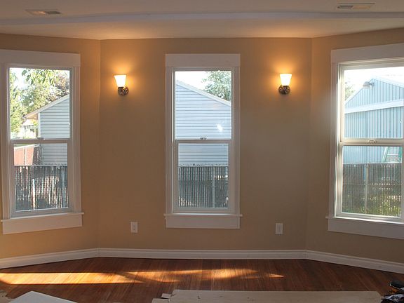 This lovely five-bedroom, two-bathroom, three-level, 1,973-square-foot house in North Portland is only about one mile from the University of Portland. It features three spacious rooms upstairs that share a bathroom, a smaller bedroom on the main level and a large bedroom on the lower level. The house went through a complete down-to-the-studs renovation, based on architectural drawings, in 2012. It includes a kitchen, living room, dining room, large front porch, washer & dryer, spacious backyard, front yard, and driveway. Solid bamboo floors were installed on the first floor, stairs and second floor. The house is close to various bus lines that can take you to the yellow MAX line on N Interstate Ave. Grocery shopping can be done at one of two Fred Meyer stores on Lombard or at the New Seasons on N Interstate.